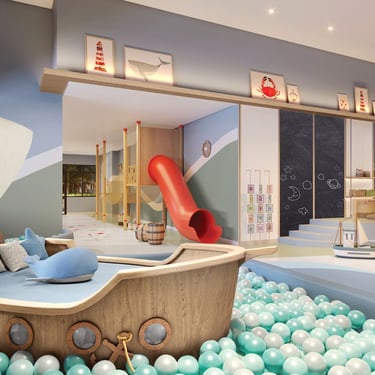 Playground, brinquedoteca, jogos juvenil, salão de festas infantil e espaços educativos.Educação integrada ao condomínio