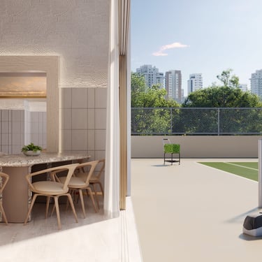 O lazer foi concebido como um verdadeiro wellness clube particular: piscina coberta e descoberta, spa, saunas, fitness, quadra de tênis, pool house, private house para eventos, brinquedoteca, playground e amplas áreas de convivência. Ambientes pensados para cuidar do corpo, da mente e das relações, sem sair de casa.