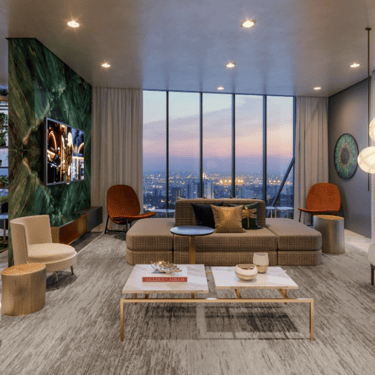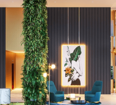 A arquitetura impressiona pela imponência e leveza: fachada ativa, pele de vidro, brises metálicos, guarda-corpo em vidro e um elegante jogo de volumes com terraços em balanço. O lobby com 226 m² e pé-direito duplo de 5,90 metros cria uma chegada impactante, digna de empreendimentos internacionais de alto padrão.
