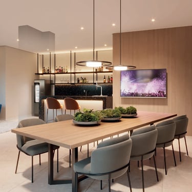 O projeto também incorpora comodidades exclusivas que facilitam a rotina moderna: minimarket no condomínio, espaço delivery, bicicletário, vaga para carro elétrico, car sharing e infraestrutura para Wi-Fi e automação, reforçando um morar conectado, inteligente e sustentável.