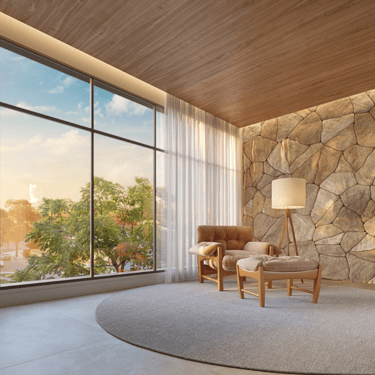O projeto equilibra com perfeição design contemporâneo, materiais nobres e paisagismo exuberante. Vidro, cimento e elementos orgânicos se harmonizam em ambientes que acolhem, conectam interior e exterior e valorizam o bem-estar em cada detalhe. Aqui, o morar acontece sem limites, sem medidas — no ritmo da sua vida.