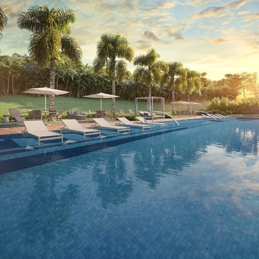 O lazer é generoso, exclusivo e pensado para todas as fases: piscinas adulto com raia de 25 metros e infantil, solarium, quadra de tênis, casa de festas, casa de campo, varanda gourmet, lounge bar, steak house, poker & snooker, coworking, fitness, kids garden, pet garden, mini market e muito mais. Um verdadeiro clube privado, cercado de verde e sofisticação.