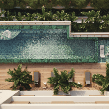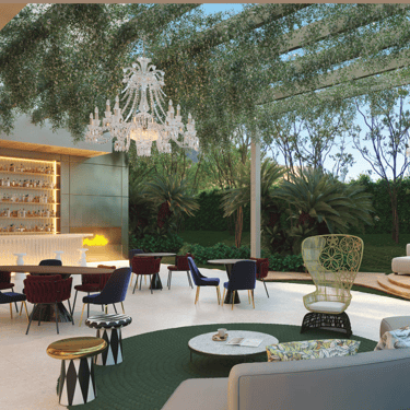 As áreas comuns foram concebidas como extensões da experiência de morar: lobby icônico, lounges integrados ao jardim, spa, piscina, fitness, kids place e espaços de convivência que estimulam o bem-estar, o encontro e o encantamento. Cada ambiente é um convite para desacelerar, contemplar e viver o extraordinário.