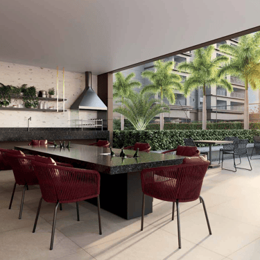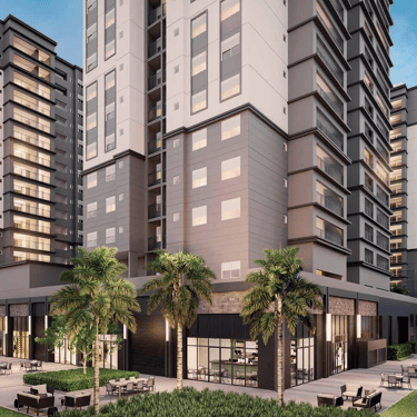A experiência começa já na chegada, com porte-cochère e lobby com pé-direito triplo, reforçando imponência e identidade arquitetônica. O projeto integra um mall no térreo, trazendo conveniência e valorização ao entorno, além de promover conexão e dinamismo ao dia a dia.