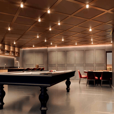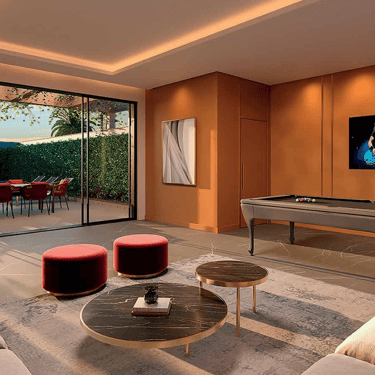 O lazer é completo e cuidadosamente planejado para diferentes perfis e momentos: salão de festas, pub, lounge gourmet, churrasqueira, fitness interno e externo, spa, piscina adulto e infantil, solarium, quadra de tênis, private pool house, brinquedoteca, jogos teen e playground. Ambientes que oferecem mais de 20 possibilidades de convivência, bem-estar e entretenimento.